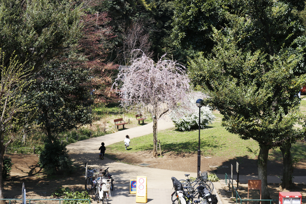 目の前が公園なので、外も中も緑の景色。心穏やかにデザイン出来る環境です。