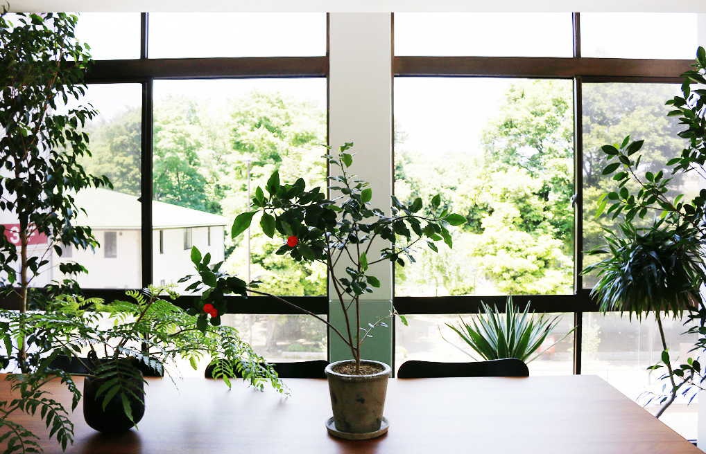 写真はスタジオ内お気に入りの一角。写っていないところ含め、観葉植物を沢山育てています。